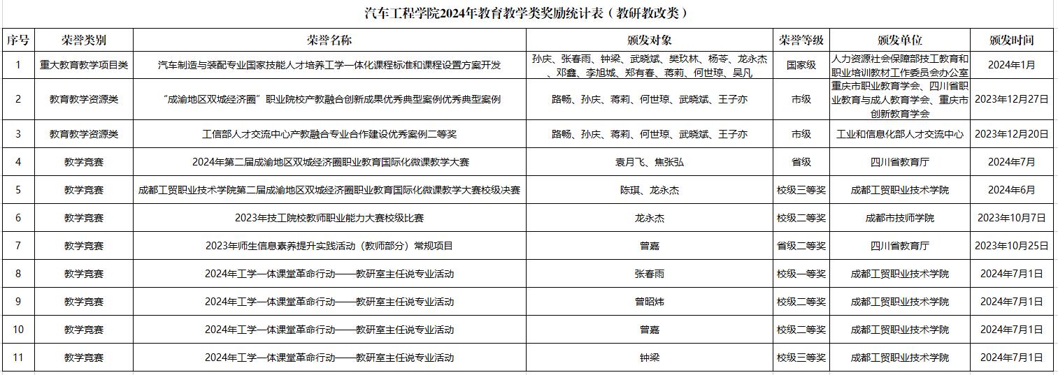304永利集团2024年公司产品类奖励统计表(教研教改类)